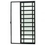 PORTA DE CORRER SACADA 2 FOLHAS UMA FIXA COM FECHADURA VIDRO LISO LINHA PREMIUM ALUMÍNIO PRETO
