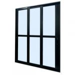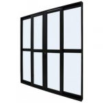 PORTA DE CORRER SACADA 4 FOLHAS DE VIDRO LISO COM FECHADURA LINHA PREMIUM ALUMÍNIO PRETO