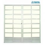 PORTA BALCÃO 2 FOLHAS QUADRICULADO ALUMÍNIO BRANCO COM FECHADURA – LINHA 25 TRIFEL