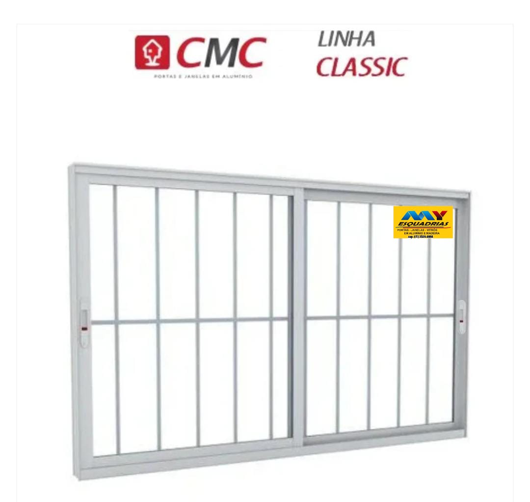 VITRO 2 FOLHAS COM GRADE – LINHA CLASSIC 25 ALUMINIO BRANCO BRANCA